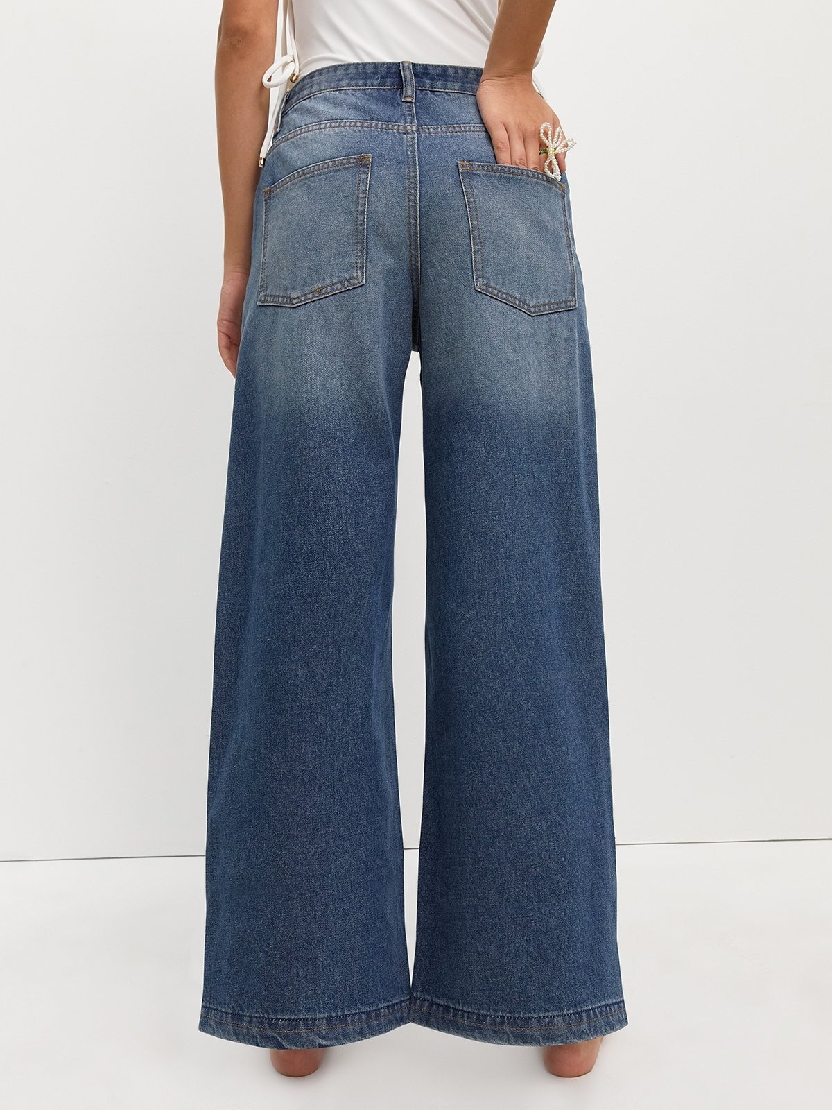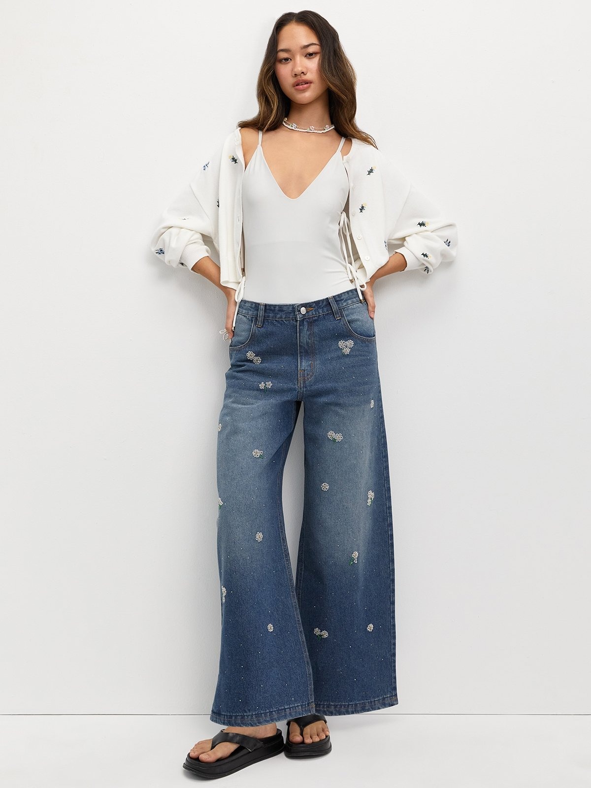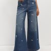Bead Embroidery Wide Leg Jeans – Blue crafted in premium denim for everyday wear.
