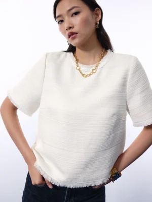 • Design: Cropped length, slim fit, round neck, short sleeves