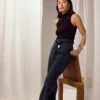Fit: High-waist, relaxed through the leg, gentle flare at hem
