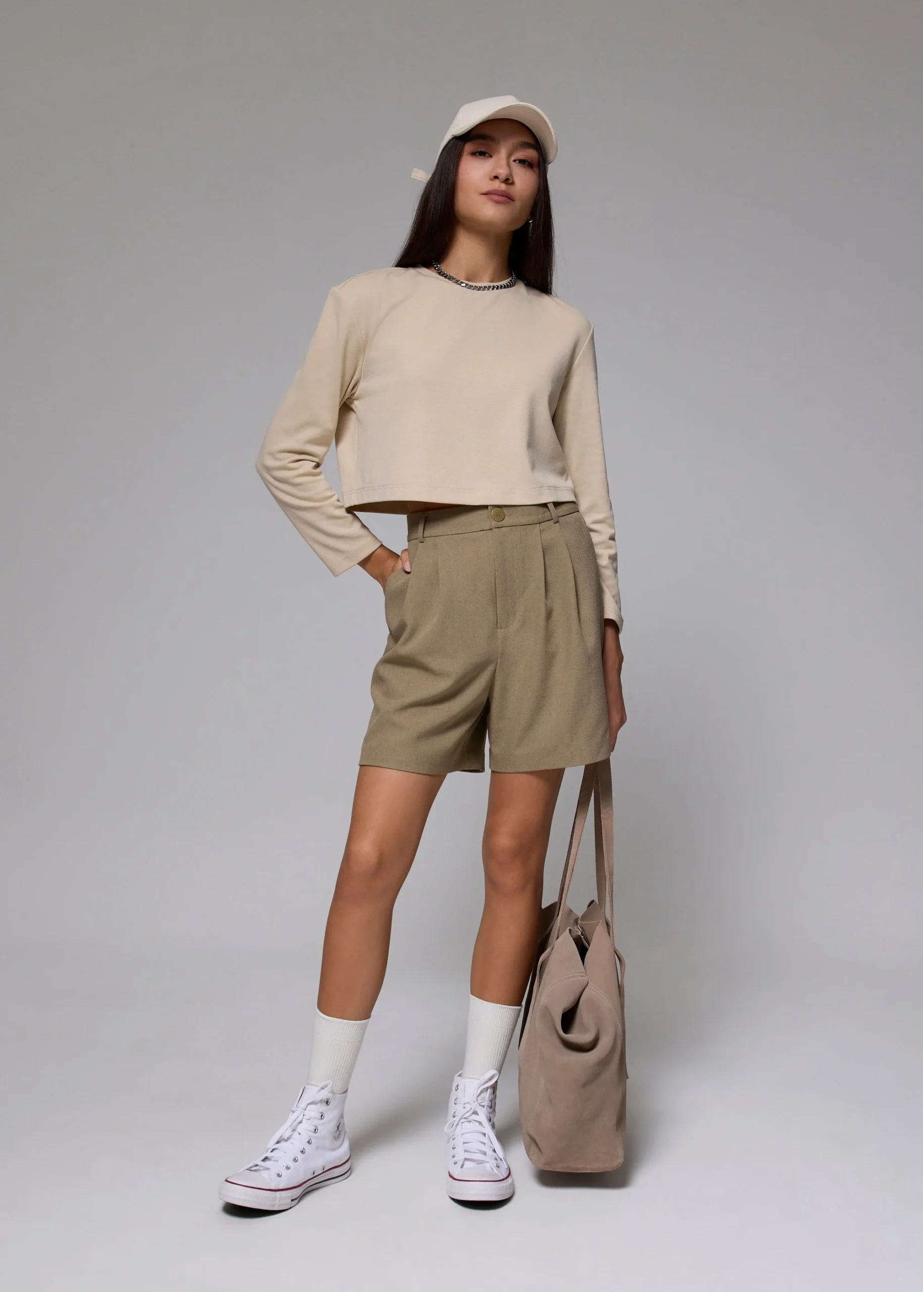 Elevate your everyday wardrobe with these chic high-waist pleated shorts, designed for both comfort and modern style. Crafted from a premium woven fabric, these shorts feature a flattering tailored silhouette with subtle pleats at the front and a classic button closure for effortless elegance. The above-knee length and loose fit ensure freedom of movement, while practical side pockets add functionality. Perfect for pairing with crop tops, shirts, or relaxed tees, these versatile shorts transition seamlessly from casual outings to semi-formal occasions. Enjoy a polished look with minimal effort!