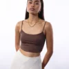 Refresh your wardrobe with this minimalist mocha brown crop top, designed with slender shoulder straps for a sleek and sophisticated silhouette. The fitted bodice is crafted from a smooth, stretchable fabric that hugs the figure while allowing comfortable movement. Perfect for styling with flowy skirts, high-waisted pants, or layering under blazers, this versatile top is ideal for both casual outings and chic daywear events.