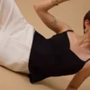 Achieve timeless elegance with this classic black fitted spaghetti strap top. Tailored from a smooth, stretchable fabric, this top features a refined squared neckline and figure-flattering seamed construction. The slender straps add subtle delicacy, while the gentle flare at the hem enhances comfort and silhouette definition. Style this versatile piece with tailored trousers or skirts for chic minimalism, or layer under jackets for sophisticated day-to-evening looks. Soft and breathable, it is a wardrobe essential for effortless dressing.