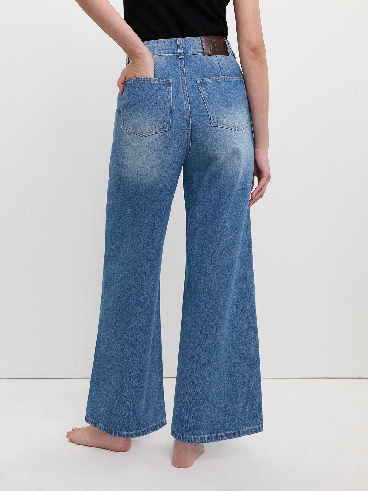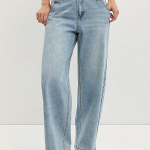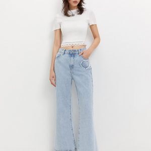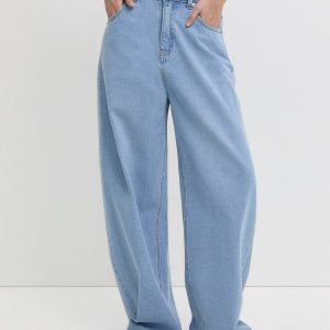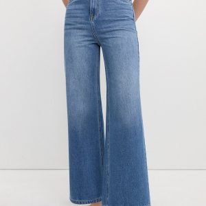 Double Button Wide Leg Jeans – Blue crafted in premium denim for everyday wear.