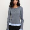 Step into effortless style with this sophisticated grey knit top, beautifully accented by sky-blue pleated trims at the hem and cuffs. The soft knitted fabric ensures comfort throughout the day, while the delicate pleated detailing adds a graceful, feminine touch that stands out in any setting. With a classic round neckline and full-length sleeves, this piece transitions seamlessly from daily errands to casual gatherings.
