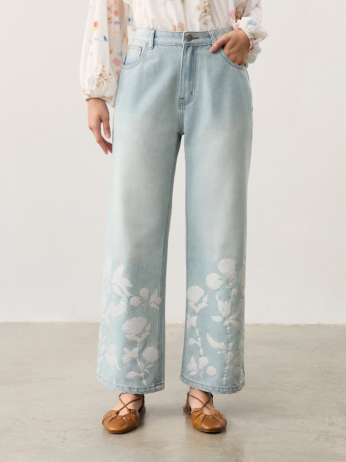 Floral Wide Leg Jeans – Light Blue designed in premium denim for everyday comfort and style.