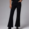 Step out in sleek style with these high-rise black bootcut jeans, designed for a flawless fit and modern silhouette. Made from rich, stretch denim, these jeans contour smoothly through the hips before flaring gently at the hem for a balanced, elongated look. The classic five-pocket styling and clean lines make them an essential wardrobe staple, ideal for pairing with cropped tops and boots for a chic city vibe.