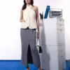 Step into sophistication with this stylish halter neck waistcoat crafted in an elegant ivory shade, detailed with subtle pinstripes for a polished effect. The sleeveless design and tailored silhouette perfectly contour the body, while the asymmetric front button fastening and hidden back zipper add a touch of modern flair. Discreet welt pockets and a fitted waist elevate its office-ready appeal, making this top a versatile choice for both formal meetings and chic everyday wear.