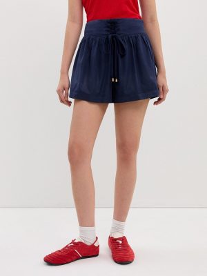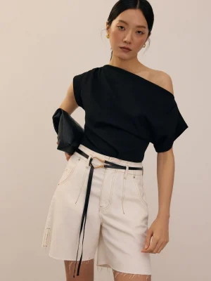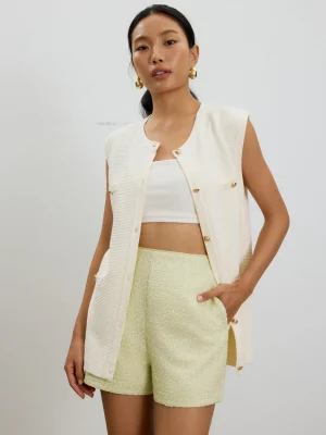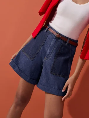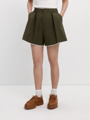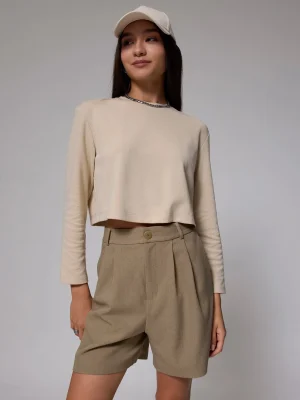Experience elevated style with these ivory pleated high-waist tailored shorts, crafted for modern sophistication and comfort. Featuring a structured waistband and prominent front pleats, these shorts provide a refined silhouette that is both flattering and versatile. The smooth woven fabric offers a polished finish, while the subtle mid-thigh length and tailored back ensure a crisp, minimal look. Functional side pockets and chic welt pockets at the rear add practicality, making these shorts ideal for formal or elegant daywear.