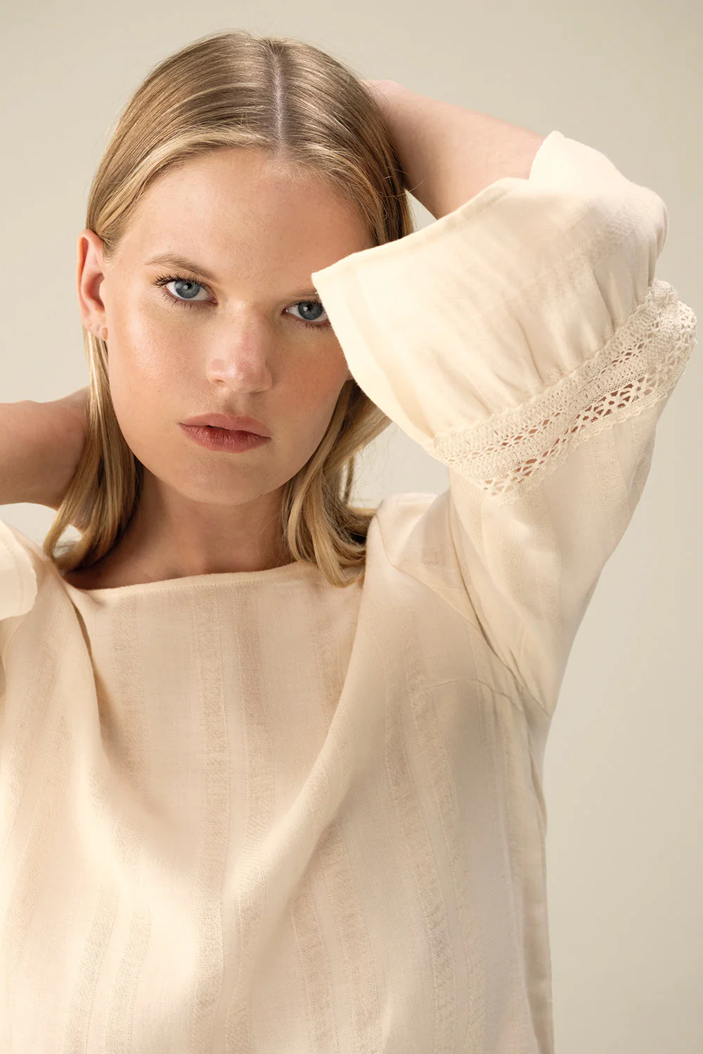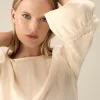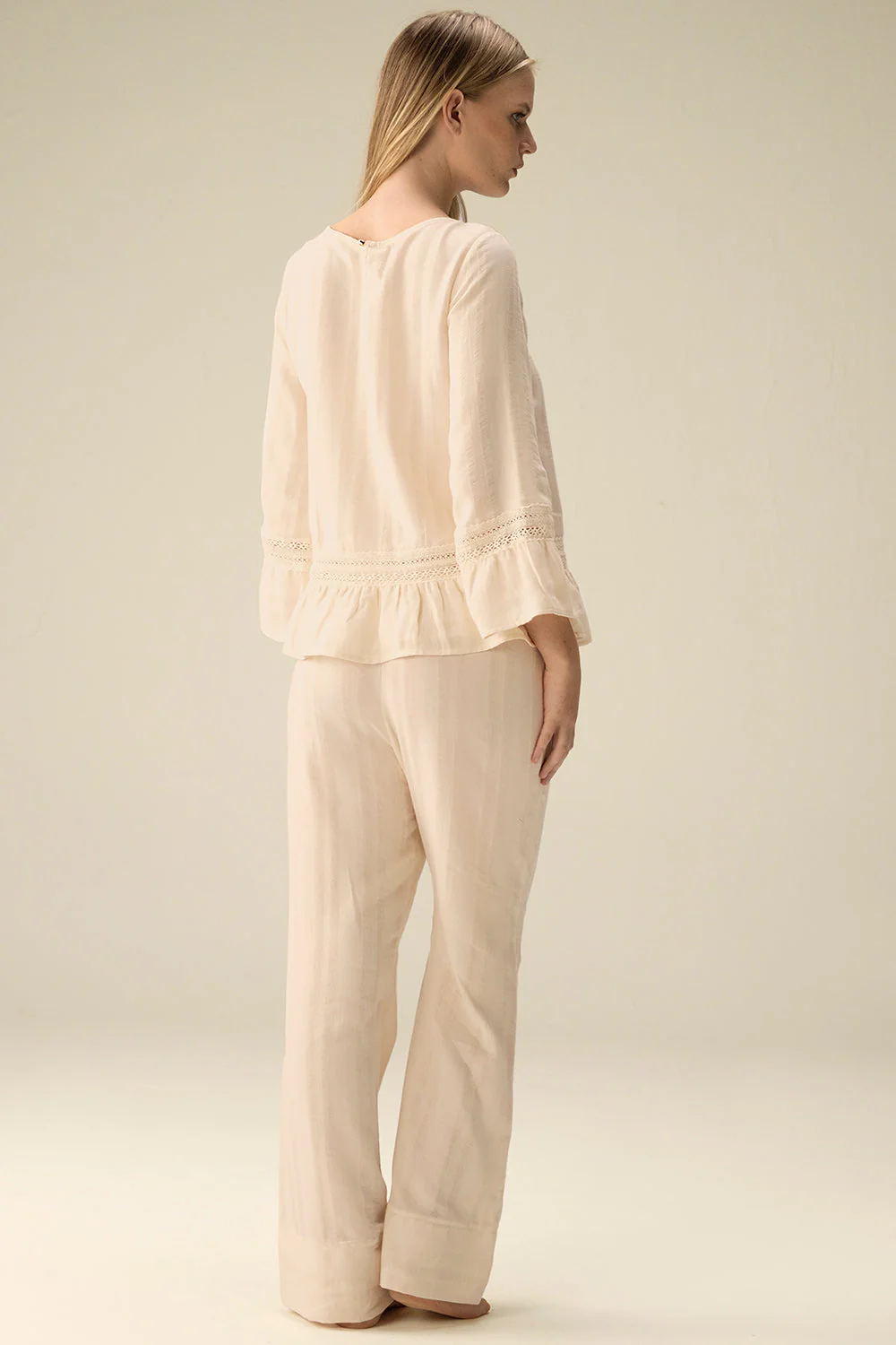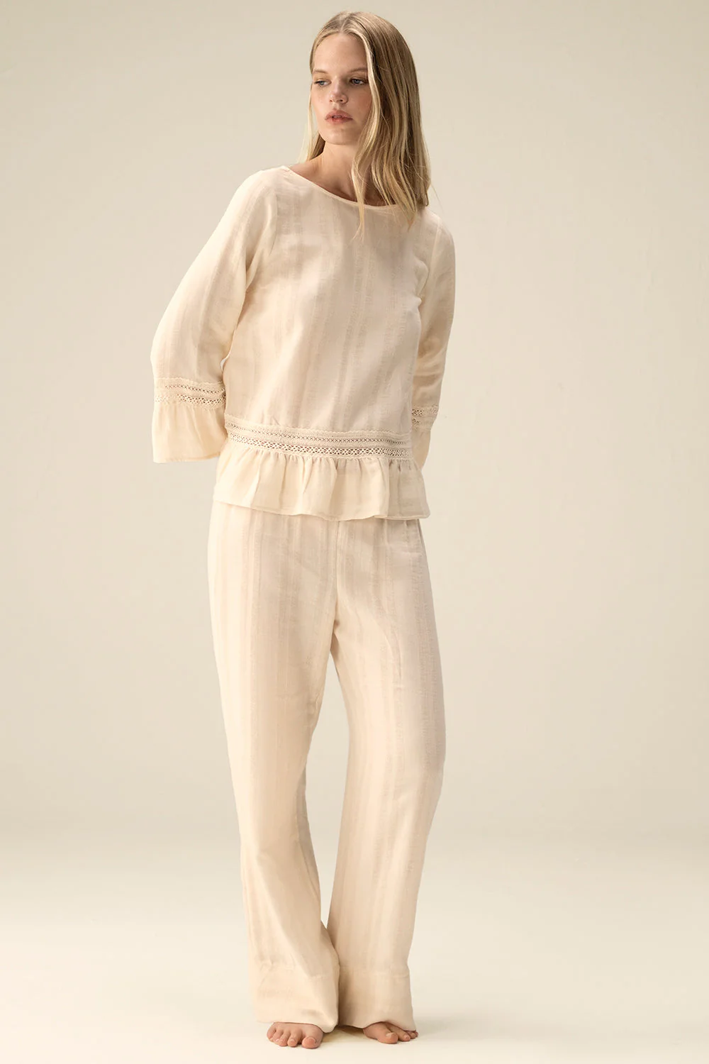 Pants pajama in striped cotton fabric – Ivory