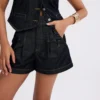 Elevate your everyday wardrobe with these tailored high-rise denim shorts, crafted in a deep indigo wash for a chic and refined look. Featuring structured pleats at the front and an adjustable back waist detail, these shorts ensure a flattering fit perfectly suited for both casual and smart ensembles. The design is finished with sleek welt pockets at the back and roomy side pockets for convenience, making them a versatile essential whether paired with vests, blouses, or your go-to summer tops.