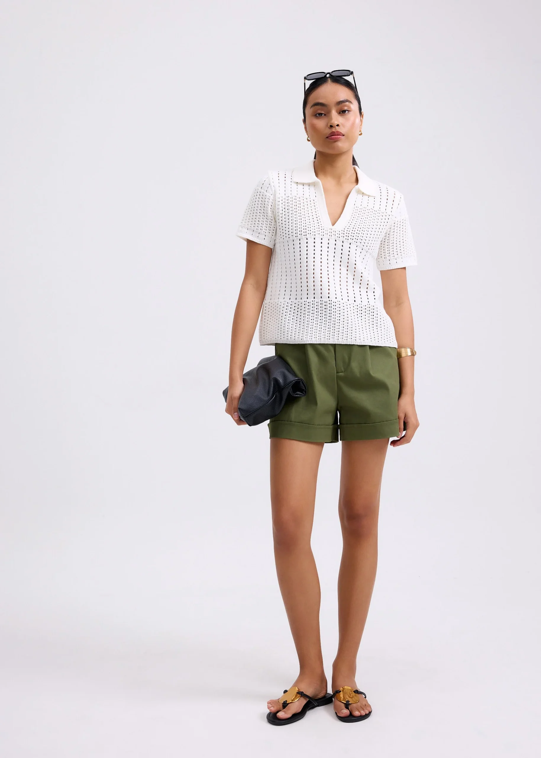 Styling Tip: Style with olive green shorts or crisp trousers for a modern summer look